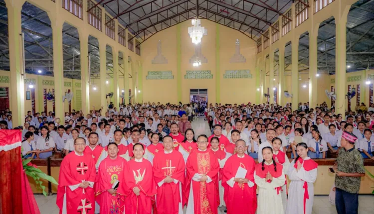 Ruteng, Pojokbebas.com – Sebanyak 974 pelajar dari 22 sekolah, baik dari Tingkat SD, SLTP, maupu SLTA plus 21 umat dewasa menerima sakramen krisma di Gereja Paroki Reo, Sabtu (18/10/2025). Perayaan ekaristi penerimaan sakramen Krisma dipimpin Wakil Uskup (Vikjen) Keuskupan Ruteng RP. Sebastian Hobahana, SVD.
